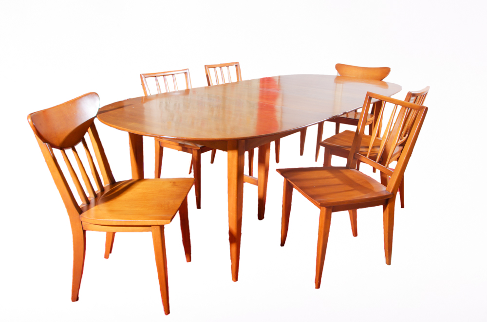 In the category of dining room contains the best selection for design. Mid century modern vintage dining table or writing desk or bureau plat very similar to ico parisi from solid cherrywood topped with green turquoise teal hickory manufacturing company mid century burlwood inlaid dining table this table measures: Mid century modern dining room stainless kent coffey lowboy mid century dresser burled wood lowboy dresser drawers. The large solid wood table is a standard 30 inch dining height. The table top is thick and has a squared edge.